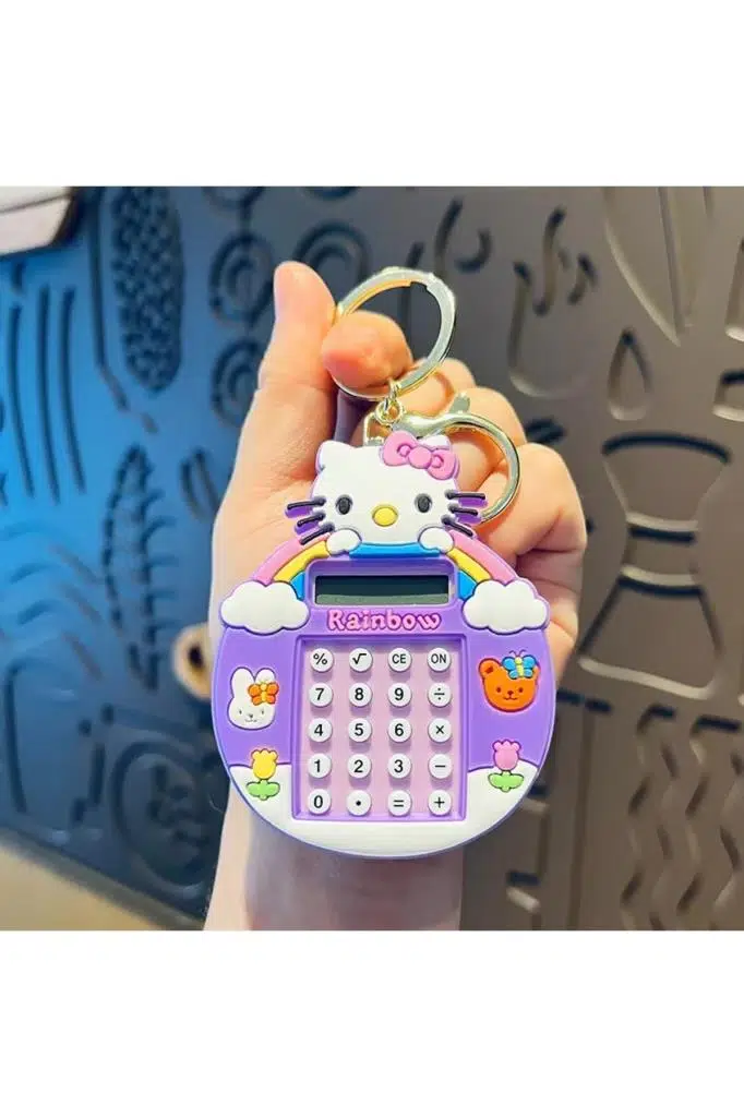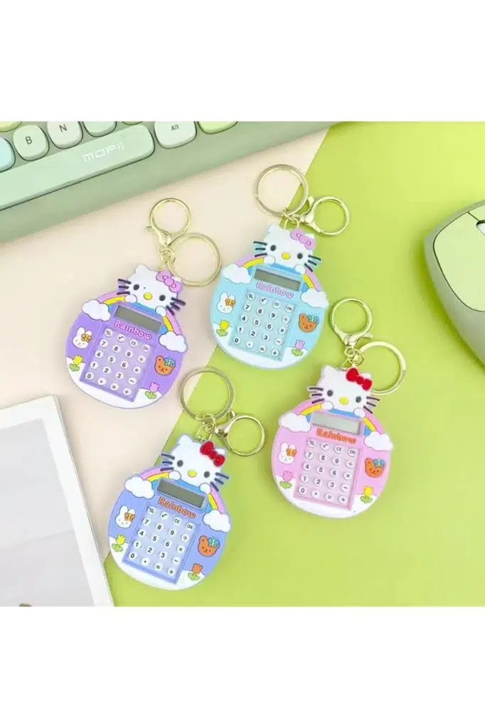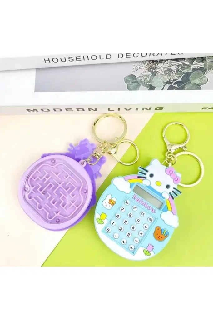 1 Adet Hello Kıtty Temalı Mini Hesap Makinesi Arkası Labirent Oyunlu Çanta Aksesuarı Anahtarlık