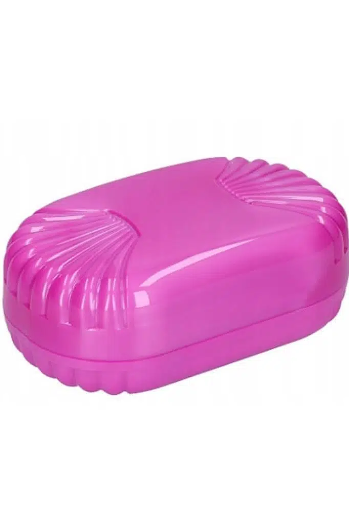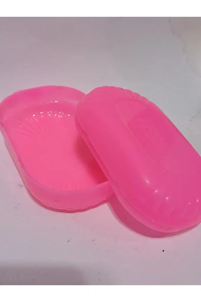 11cm Plastik Oval Pembe Kapaklı Katı Sabun Kutusu