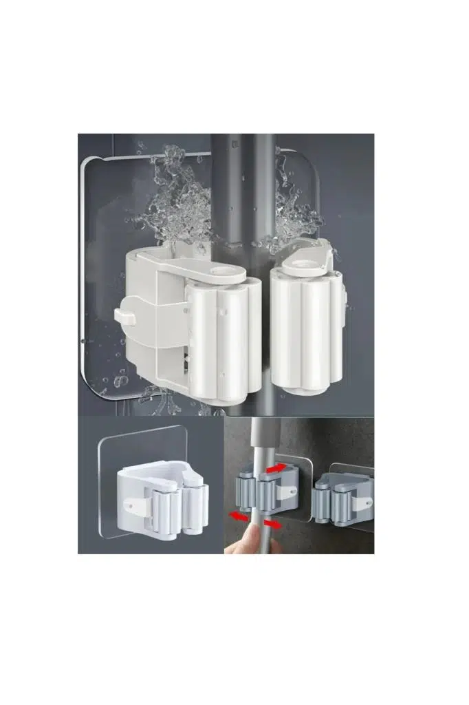 2 Adet Yapışkanlı Fırça Mop Süpürge Sap Tutucu Aparatı