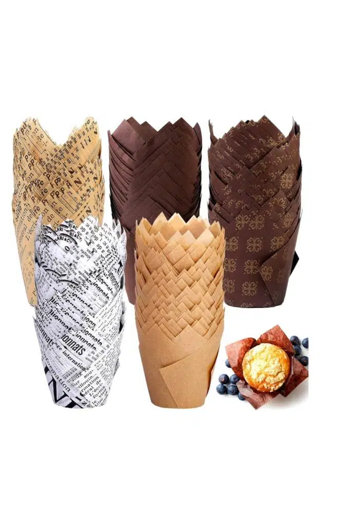 200 Adet Kek Pasta Kapsülü Desenli Kağıt Pişirme Kapsülü Yanmaz Yapışmaz Muffin Kağıdı