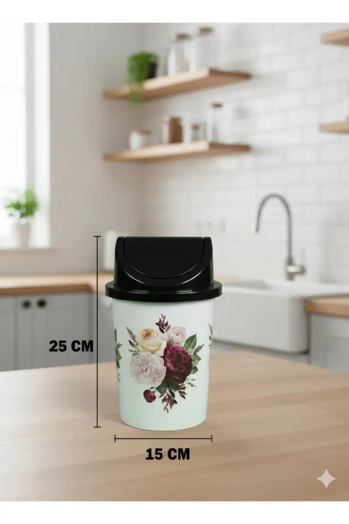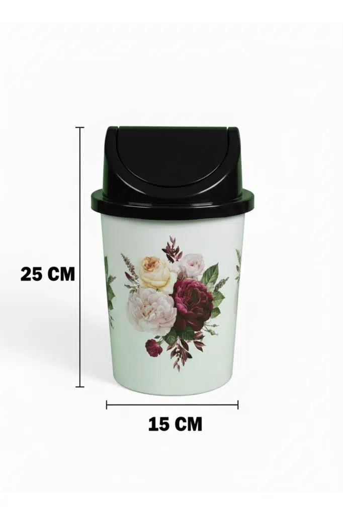 3 Litre Click Kapaklı Küçük Boy Çiçek Desen Çöp Kovası