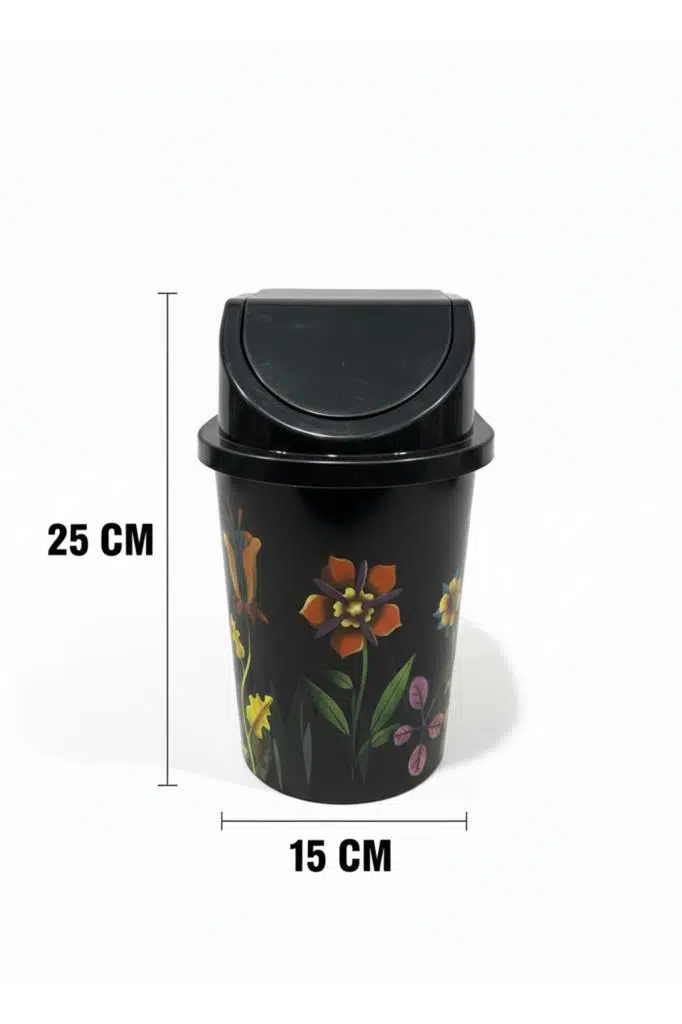 3 Litre Click Kapaklı Küçük Boy Siyah Çiçek Desen Çöp Kovası