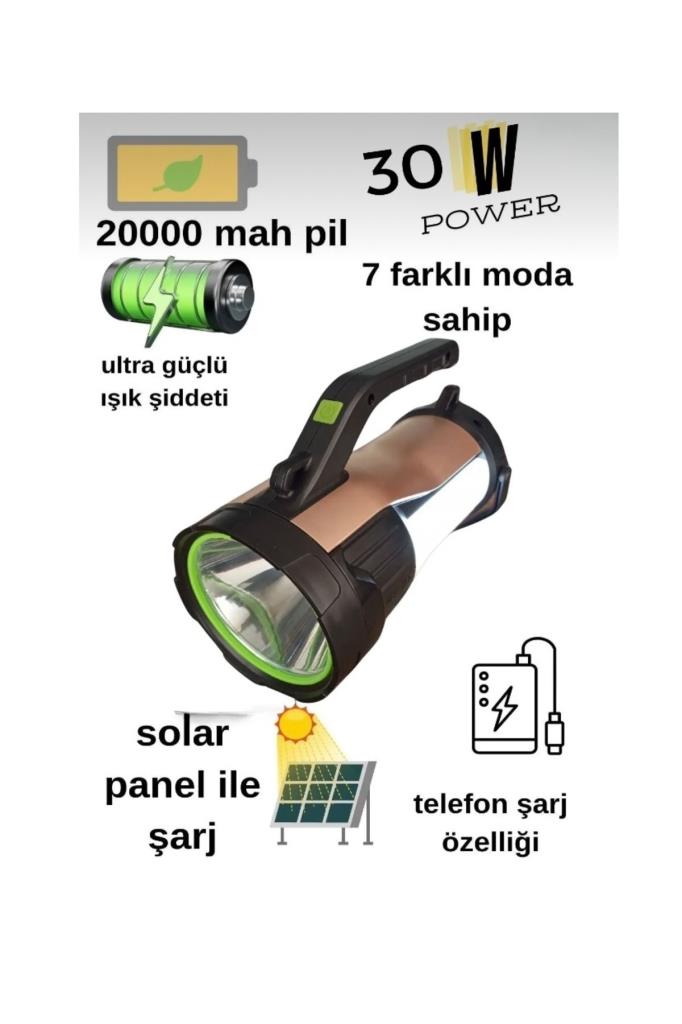| Etiketler | 30W Solar Güneş Enerjili Ve Şarjlı Powerbank Özellikli Şarj Göstergeli Led Fener Işıldak |