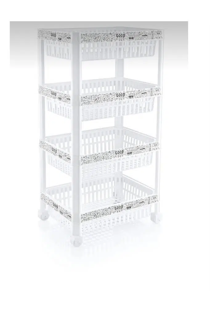 4 Katlı Plastik Beyaz Renkli Mermer Desenli Sebzelik Meyvelik Çok Amaçlı Mutfak Banyo Rafı Sepeti