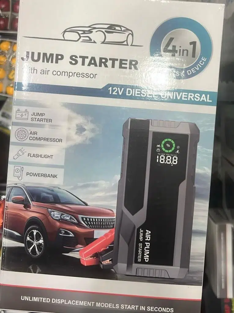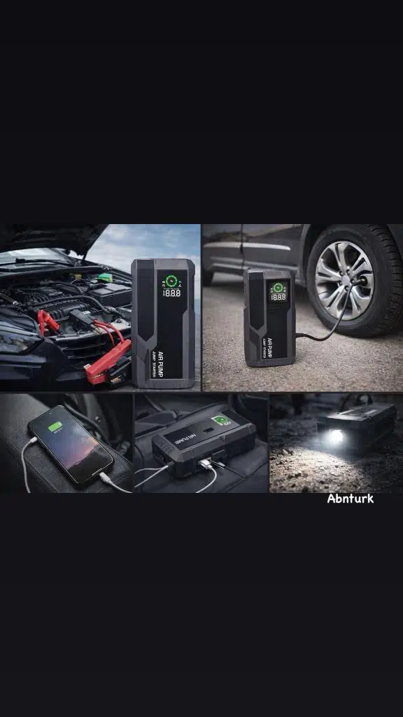 4’ü 1 Arada Araç Takviye Cihazı – Akü Jump Starter + Hava Kompresörü + Powerbank + LED Fener