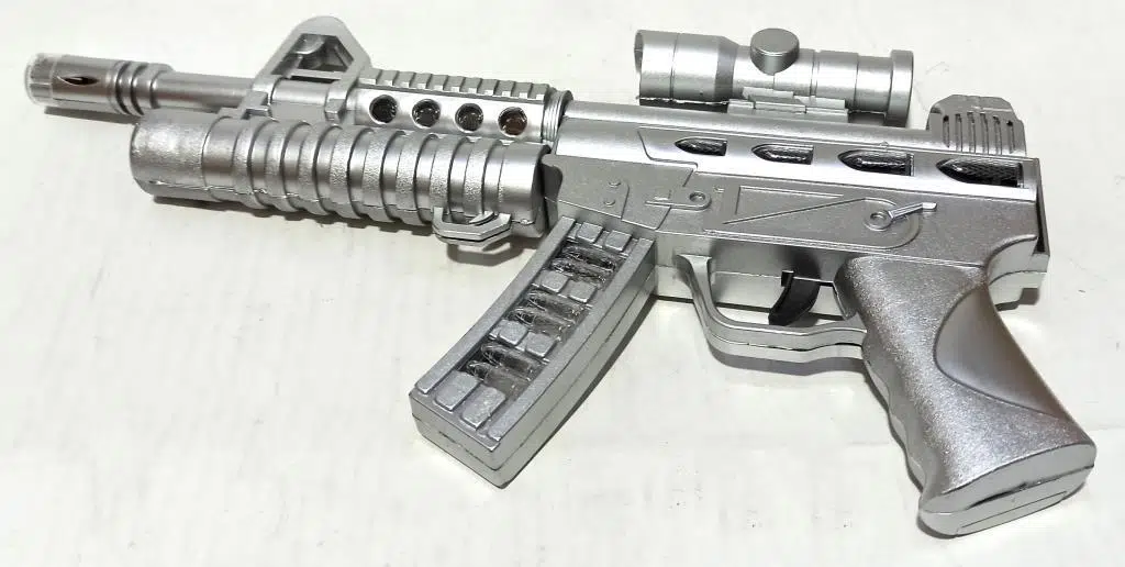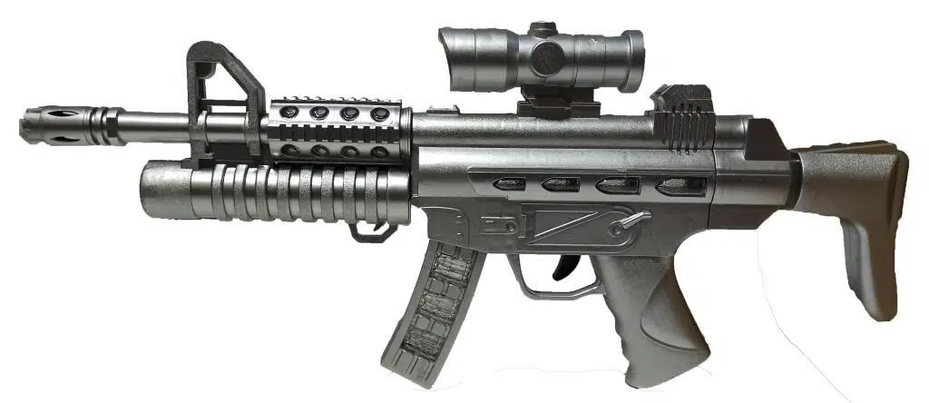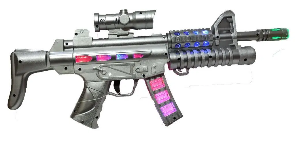 51x20x5cm Boyutlarında Sesli ve Işıklı Gri Renk Oyuncak Silah