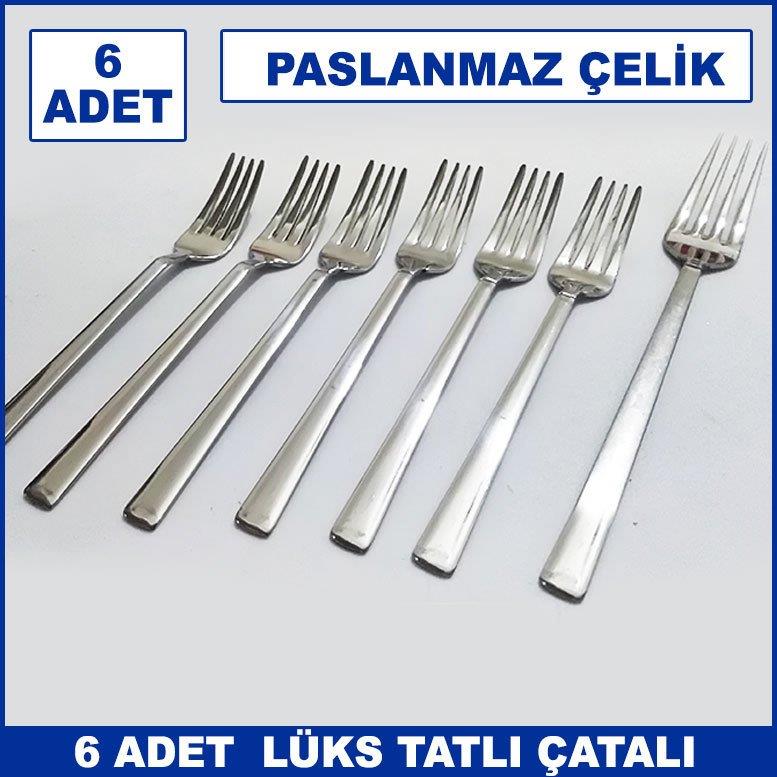 6 Adet Lüks Düz Sade Model Paslanmaz Çelik Rostfrei Tatlı Çatalı Seti