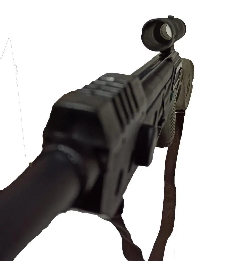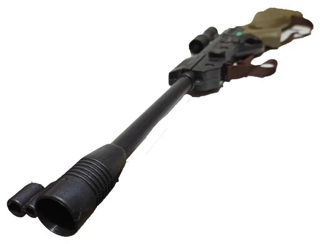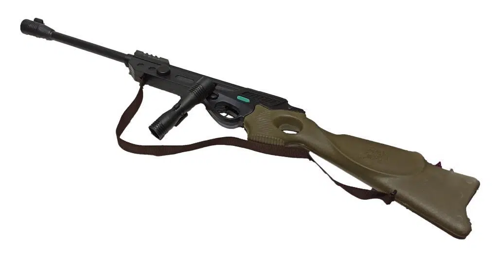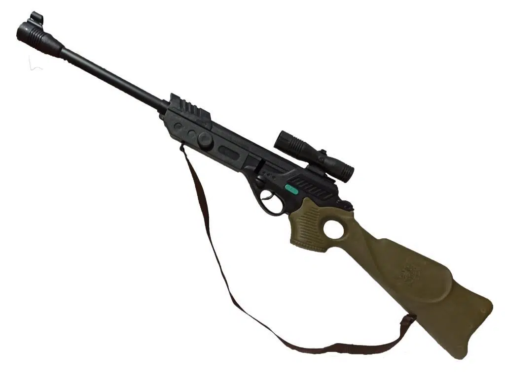 Çocukların dışarıda veya evde arkadaşlarıyla beraber oynayabileceği tekli boncuklu siyah dürbünlü tüfek.