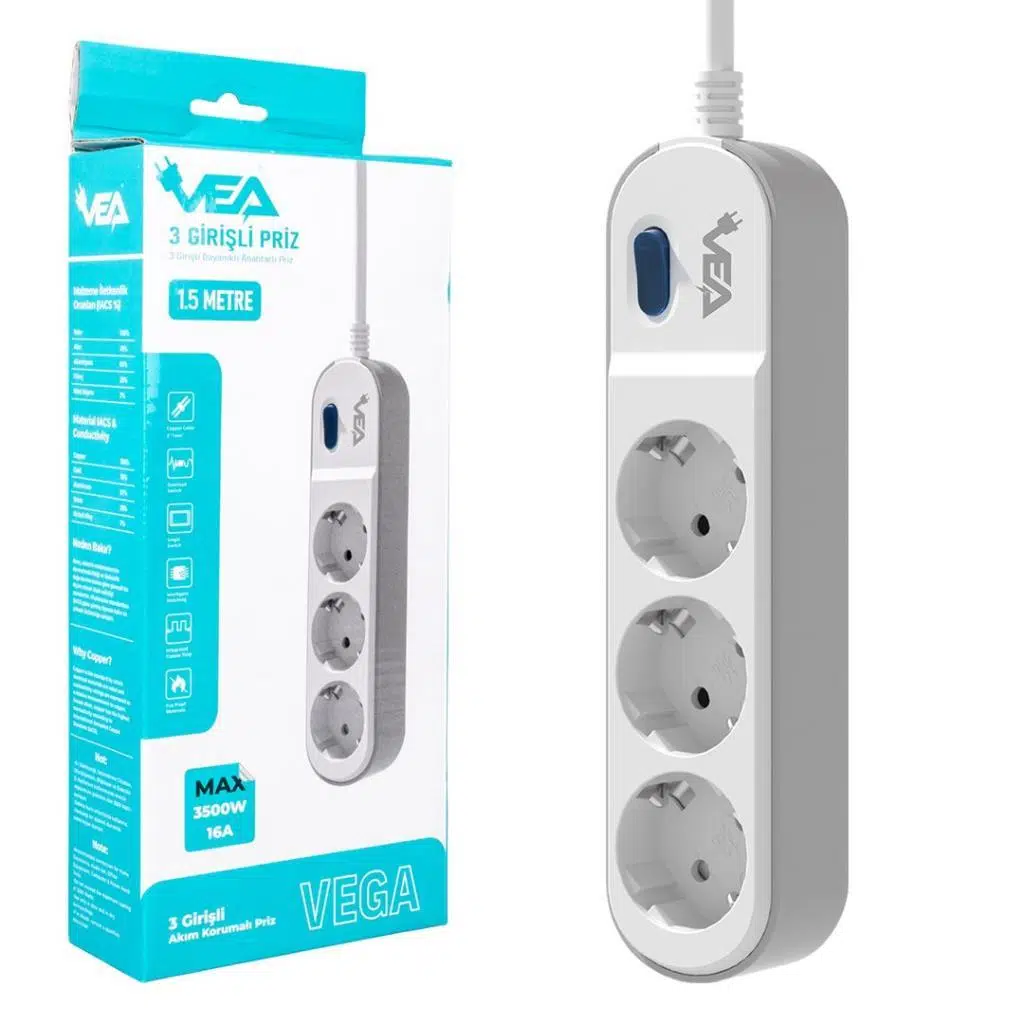 VEA VEGA103, kaliteli malzeme ve dayanıklı tasarımıyla öne çıkan, 1.5 metre bakır kabloya sahip, maksimum 3500Watt gücünde, 16 amper kapasiteli bir anahtarlı grup prizdir. Yüksek performansı ve uzun ömrüyle ev ve ofis kullanımında güvenilir bir enerji çözümü sunar.