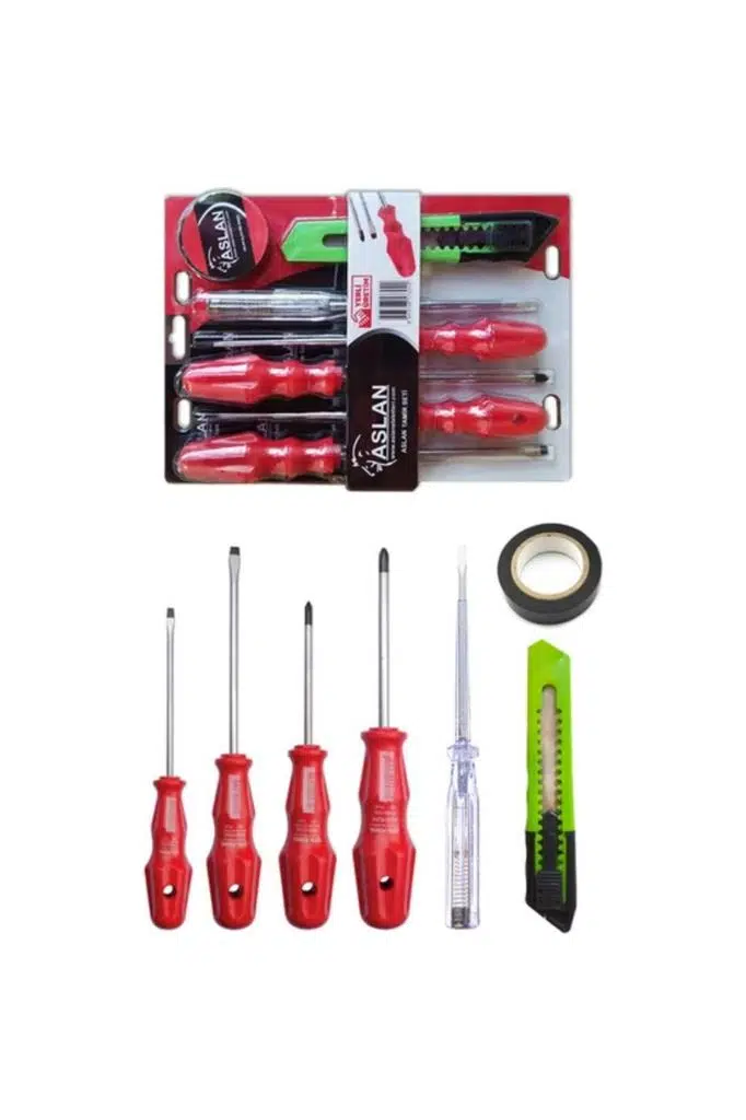 | Etiketler | Aslan 7 Parça Tamir Seti 4'lü Tornavida Seti + Kontrol Kalemi + Maket Bıçağı + Elektrik Bandı |