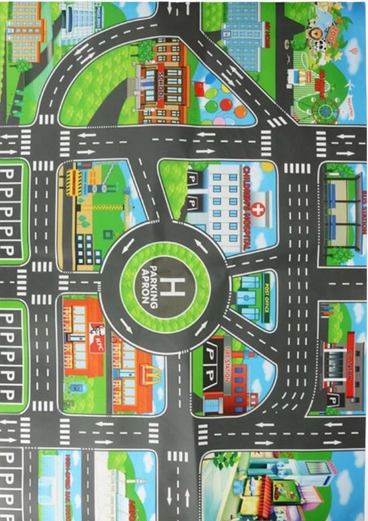 Yolda Oyun Süresi: Araba Halımızda renkli bir şehir manzarasını keşfedin ve canlı yollar ve binalarla yol maceralarını daha ilginç hale getirin. Çocuğunuzun hayal gücünü harekete geçirin ve daha fazla eğlenceyi teşvik eden canlı bir oyun alanı yaratın.
