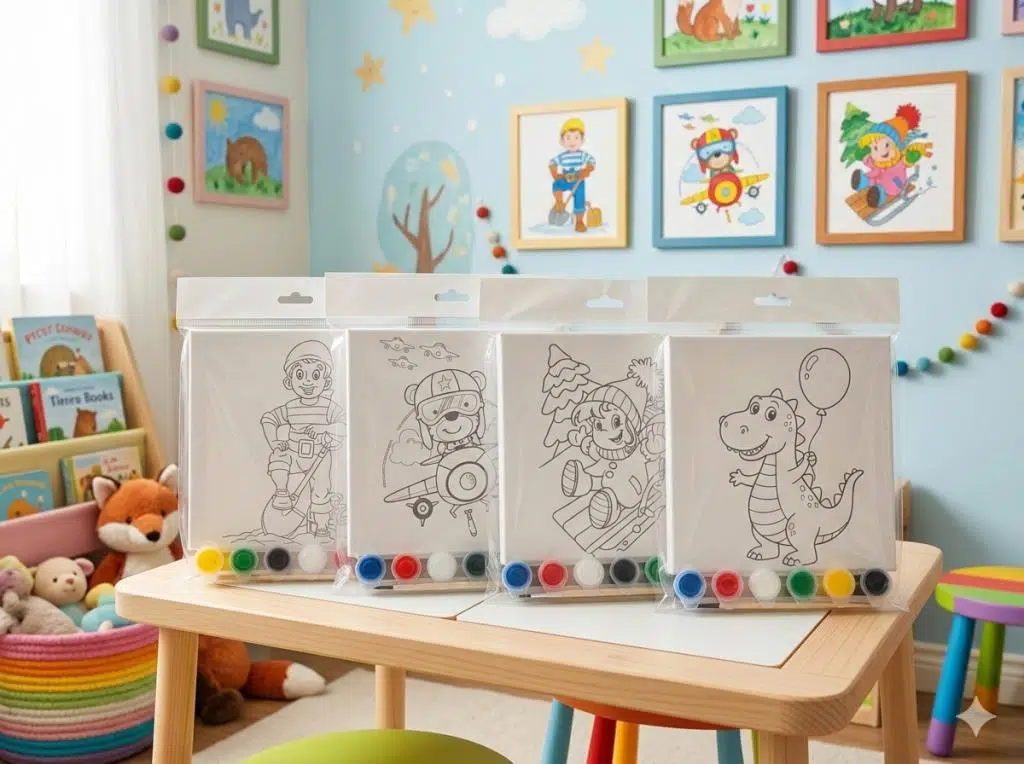 Çocuklar İçin Tuval Boyama Seti ,Çift Taraflı Resim, Boyama Fırçası ve 6 Adet Boya ile Eğlenceli Set ( Resim Figürleri Tercih Edilmiyor Elimizdekilerden Göndereceğiz )