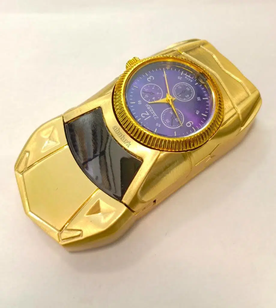 Dünyanın En Lüks Spor Arabası Saatli Çakmak Maketi %100 Metal Led Işıklı Saat Pürmüz Özellikli Yanış