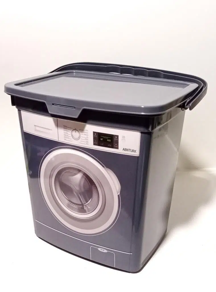 Deterjan kutusu 6 litre çamaşır makinası görünümlü deterjan kutusu Kilitli kapak sayesinde deterjan kokusunu dışarı vermez kullanışlı ve sağlam üründür.