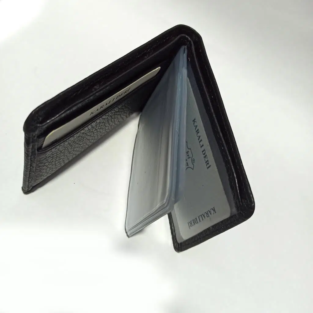 Karalı Gerçek Hakiki Deri 20 Kartlık Kredi Kart Cüzdanı 10 cm X 8 cm