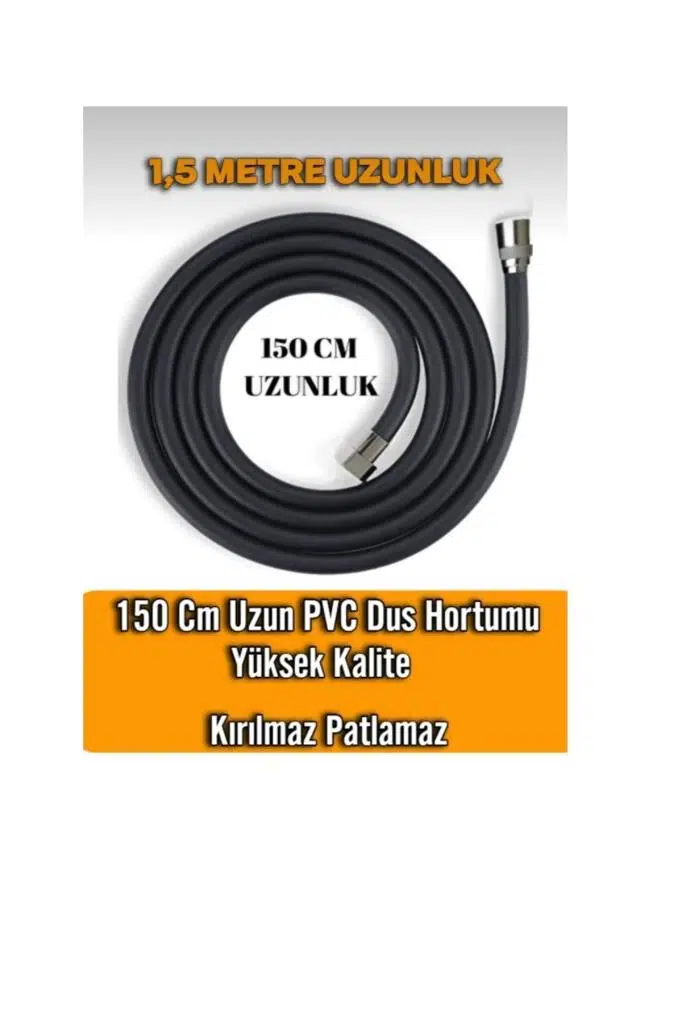 Kopmaz Patlamaz Ömür Boyu Garantili Siyah Renk Banyo Duş Hortumu Spirali Pvc 150cm