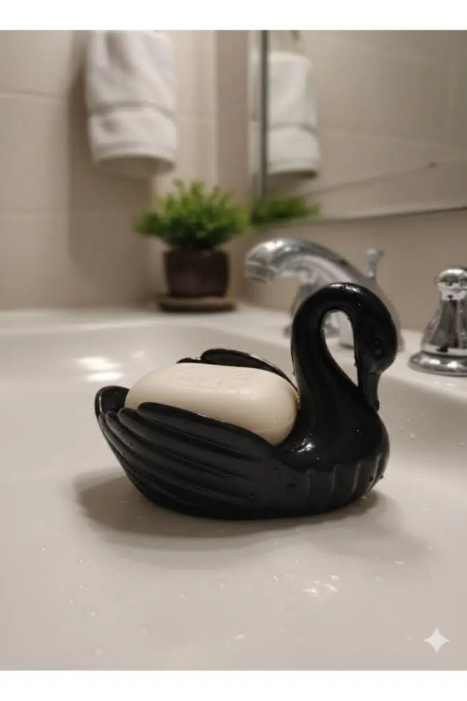 Kuğu Figürü Zarif Siyah Sabunluk porselen Görünümlü Sert Plastik