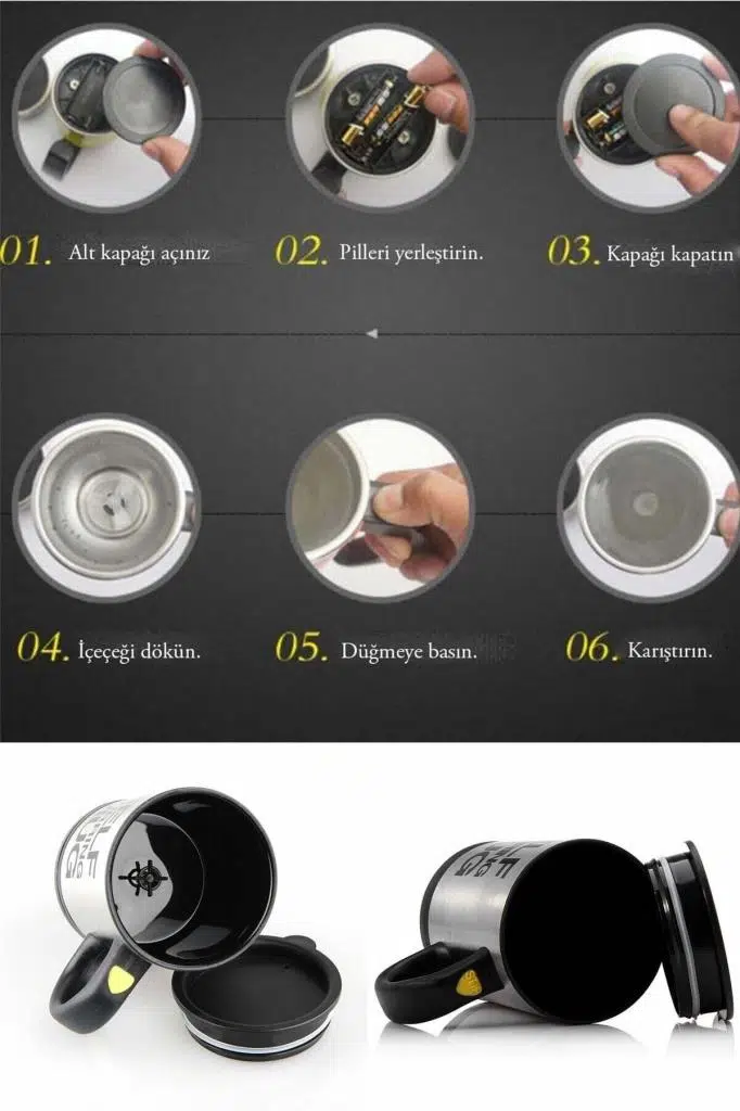 Kendi Kendini Karıştıran Termos Kupa içinde küçük bir pervane barındıran ve pille çalışan bu mucizevi alet