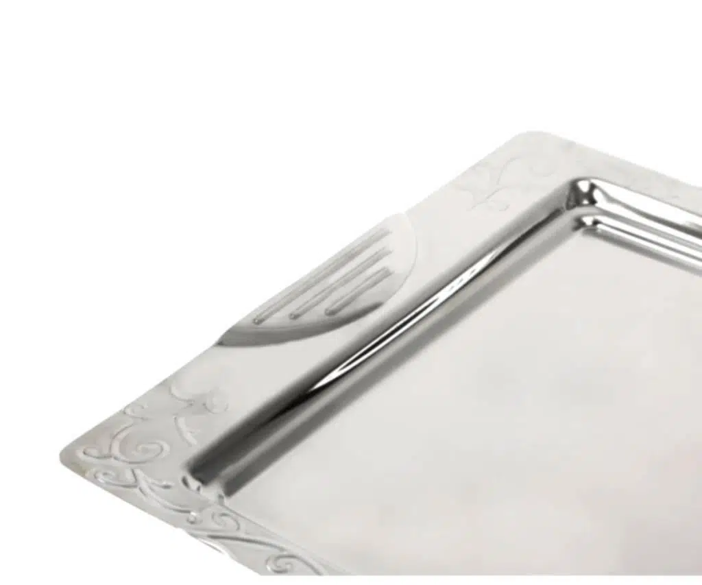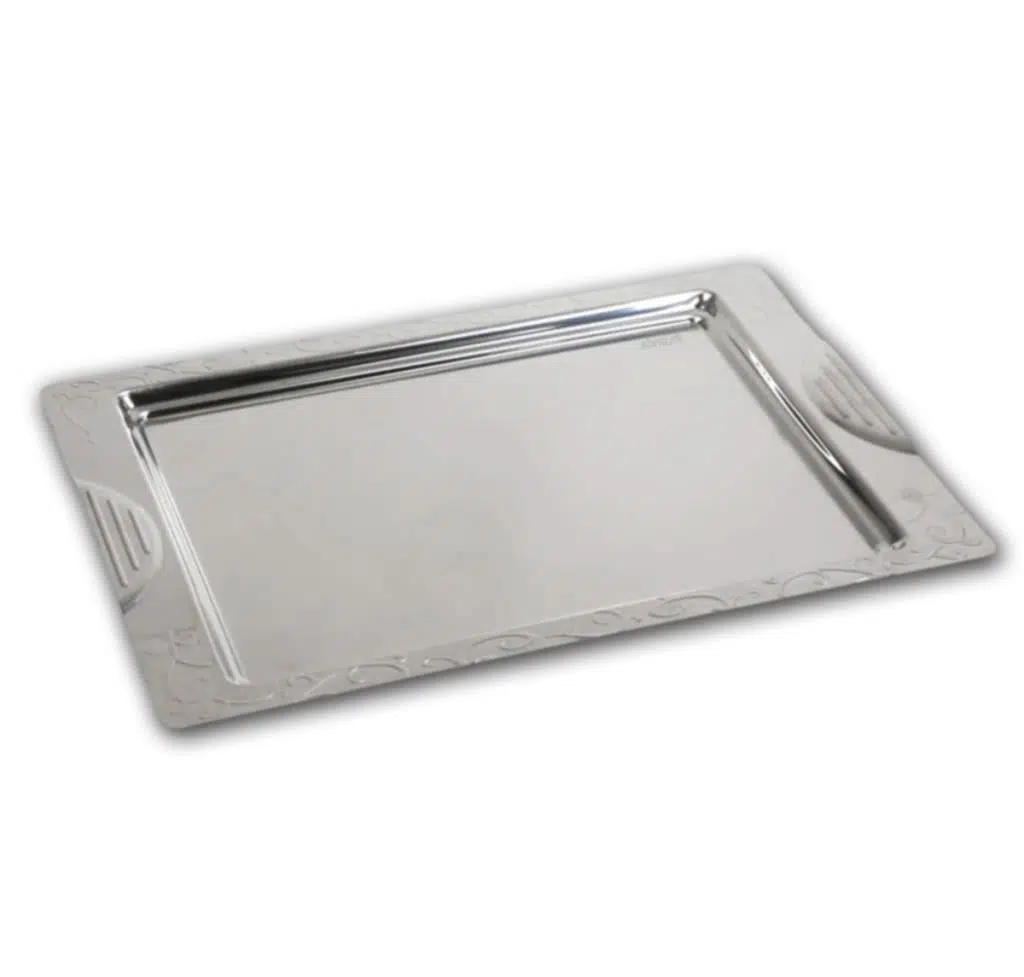 Paslanmaz Çelik Çay ve Servis Tepsisi 42x30cm Desenli Tepsi Yaşam Boyu Garantili Ultra Lüks Rostfrei