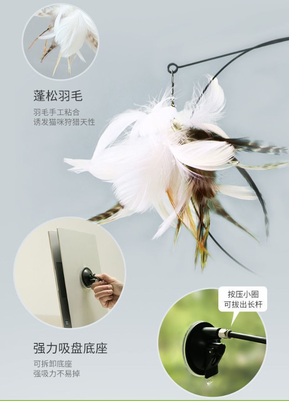 Böylece oyuncağı zemin, pencere veya duvar gibi farklı alanlara sabitleyebilirsiniz, böylece kediniz oyuncağı çekip oynarken keyif alır.
