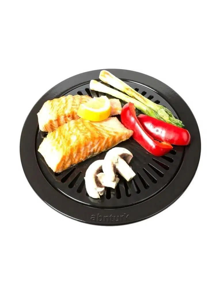 Masa üstü ocaklar için geliştirilmiş yapışmaz kaplamalı ızgara plakası. Yağ ve et suyu ızgara plakasının altındaki su kabında toplanır. Izgara plakasının kolayca çıkarılması için ızgara plakası kaldırıcısı (şişe açacağı olarak da kullanılabilir).