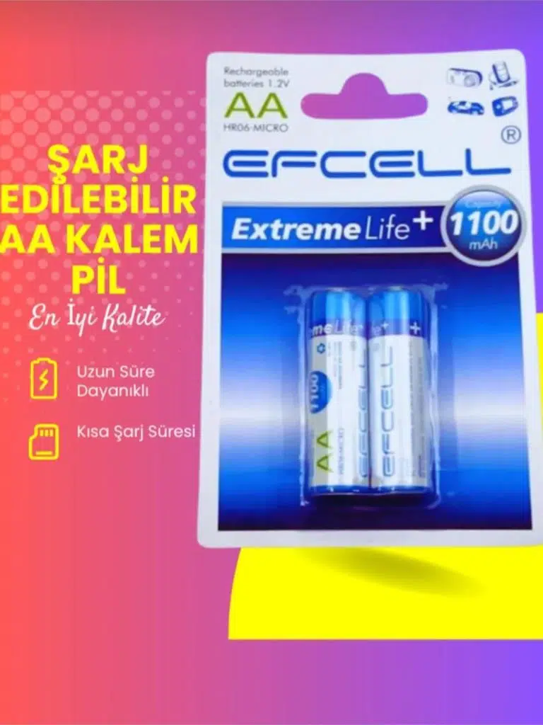 | Etiketler | Yeni Nesil Şarj Edilebilir Kalem Pil AA 1100 mAh 1000 Defaya Kadar Şarj Edilebilir 1.2V |